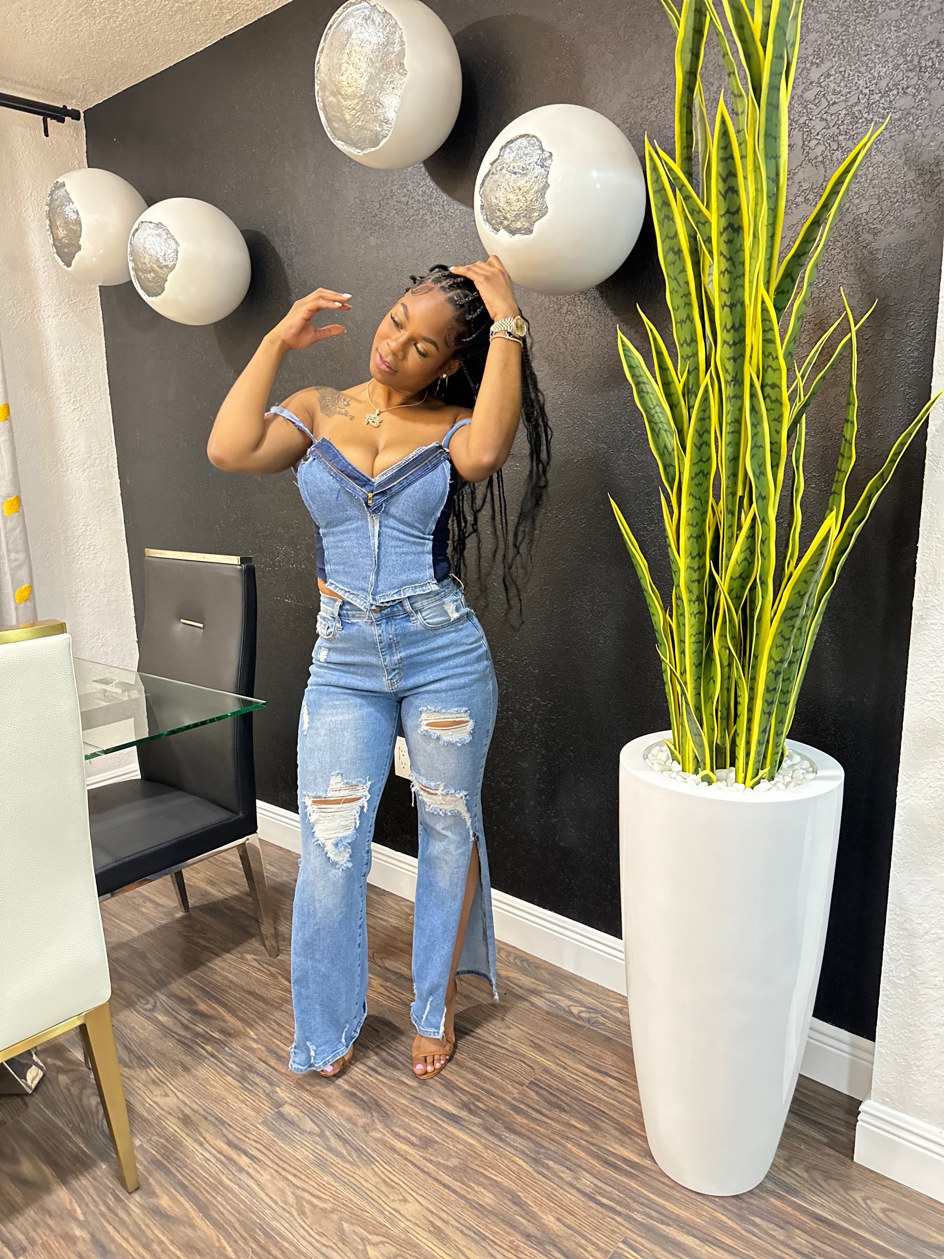 Denim Corset Back